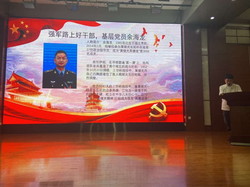 在20级化工艺2班的出色表演后,我们的宣讲人开始分享党员们的故事。五个人物,五个故事,一颗真心。宣讲人们将党员的故事娓娓道来,为我们展现了共产党人爱党爱国的心。“生命摆渡人”汪勇、“白衣战士”邱海波、“蓝天英雄”余海龙、“核司令”程开甲、“铁人”王进喜,这些共产党人值得我们点赞。这些共产党人用他们的付出,换来了如今海晏河清,盛世太平的幸福时代。