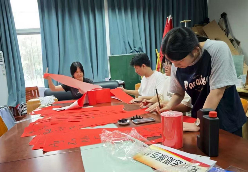 此外,我系组织学姐学长书写具有专业特色并赋予美好寓意的对联,贴在新生宿舍门口,以富有化工学科韵味的文字,营造温馨的居住氛围。